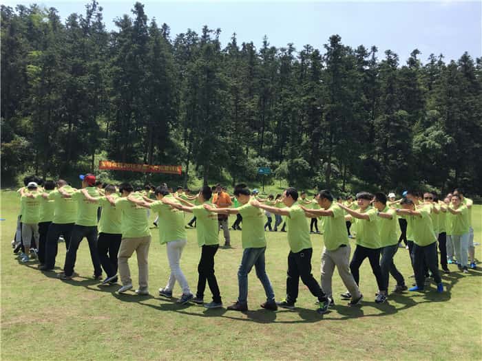 上午10點(diǎn)半左右,薩震全體員工到達(dá)百草園,沒(méi)有片刻的猶豫,也沒(méi)有人退縮,立即進(jìn)行了拓展訓(xùn)練。我們圍成一個(gè)圈,雙手搭在前方伙伴的肩上,時(shí)刻感受著來(lái)自他們的溫度,烈日炎炎下,我們?nèi)匀皇且坏懒聋惖娘L(fēng)景!是優(yōu)良的團(tuán)隊(duì)!